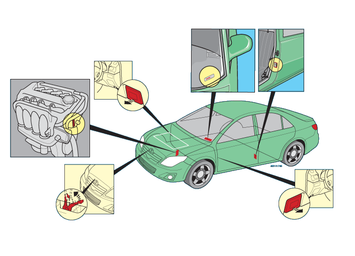 На панели под стеклом, на стойке у передней двери, под капотом и пр.
